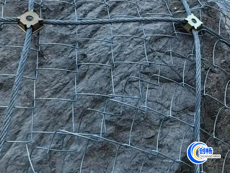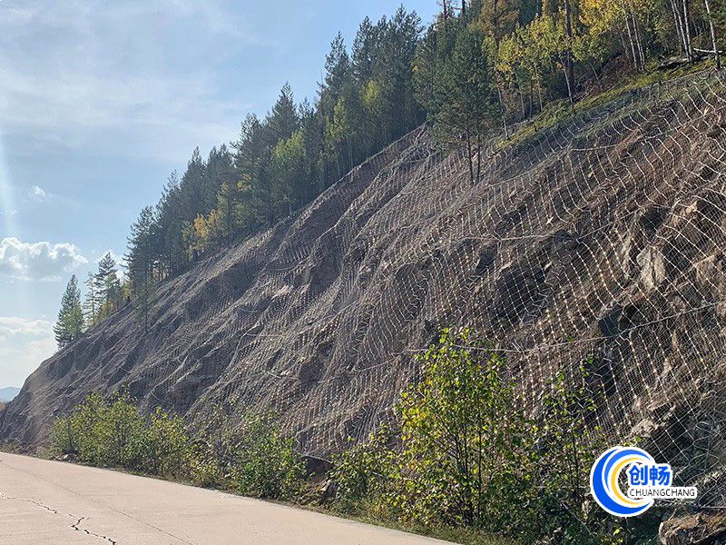 作用原理上类似于喷锚和土钉墙等面层护坡体系,但因其柔性特征能使系统将局部集中荷载向四周均材质:钢丝绳网、普通钢丝格栅(常称铁丝格栅)和TECCO高强度钢丝格栅 匀传递以充分发挥整个系统的防护能力,即局部受载,整体作用,从而使系统能承受较大的荷载并降低单根锚杆的锚固力要求 。