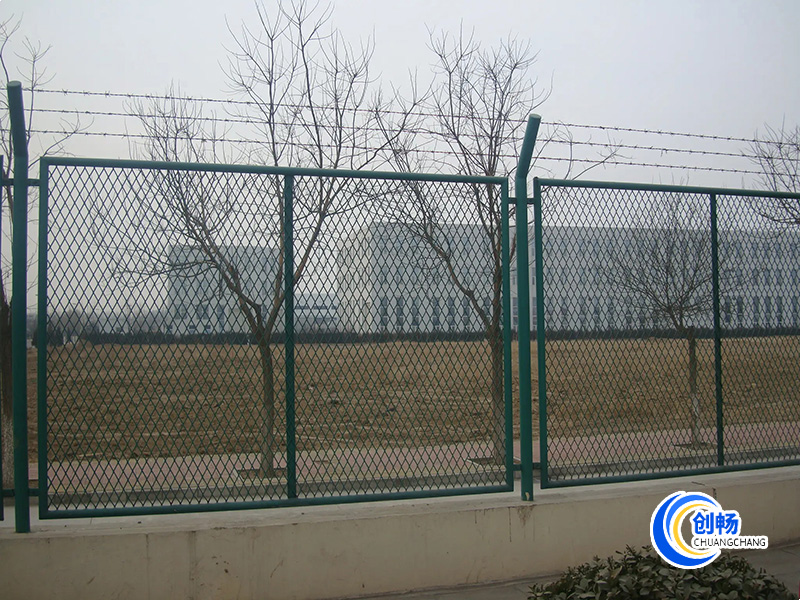 框架护栏网结构:用冷拔低碳钢丝焊接成的隔离网,用连接附件与钢管支柱固定。